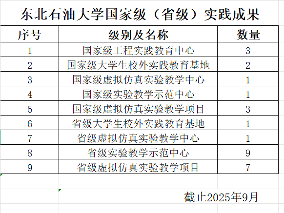 东北石油大学国家级(省级)实践成果